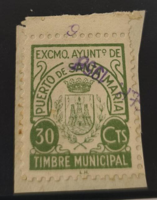 Inicio SELLOS GUERRA CIVIL ESPAÑOLA SELLOS LOCALES NACIONALES PUERTO SANTA MARÍA (CÁDIZ). EDIFIL N/C US. 30 CTS TIMBRE MUNICIPAL.