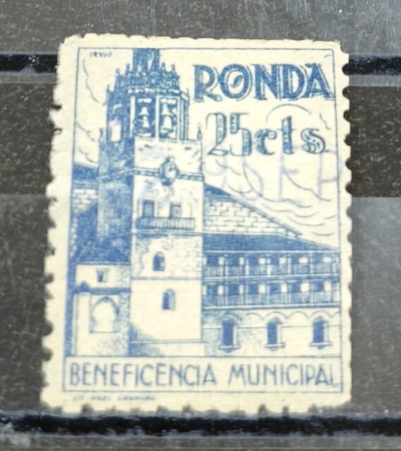Inicio SELLOS GUERRA CIVIL ESPAÑOLA SELLOS LOCALES NACIONALES RONDA (MÁLAGA). EDIFIL 9 *. 25 CTS AZUL BENEFICENCIA MUNICIPAL.