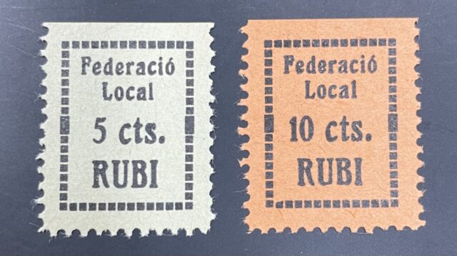 Inicio SELLOS GUERRA CIVIL ESPAÑOLA SELLOS LOCALES REPUBLICANOS RUBI (BARCELONA). EDIFIL 1/2*. 5 Y 10 CTS FEDERACIÓ LOCAL RUBI