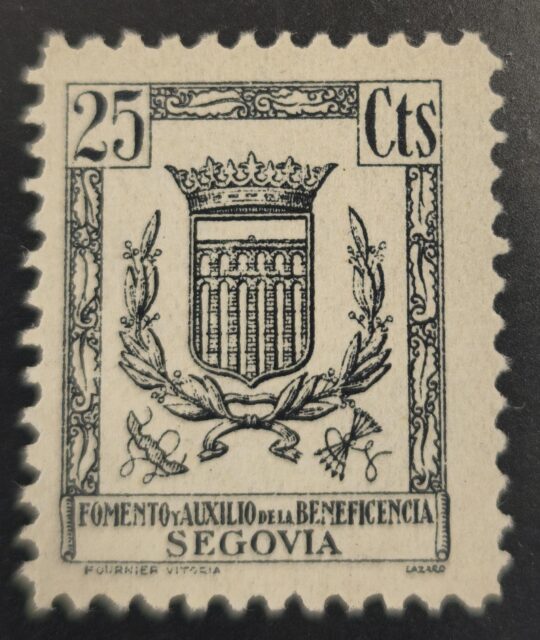 SEGOVIA. EDIFIL 136 * 25 CTS AZUL GRIS AUXILIO DE LA BENEFICENCIA.