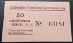 VALLADOLID EDIFIL N/C * 50 CENTIMOS SUBSIDIO FAMILIAS COMBATIENTES.