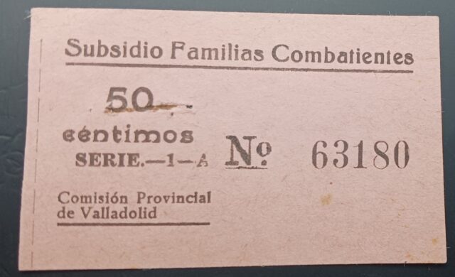 VALLADOLID EDIFIL N/C *. 50 CTS SUBSIDIO FAMILIAS COMBATIENTES.