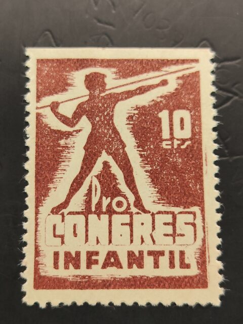 BONITA Y RARA VIÑETA REPUBLICANA EN NUEVO » NIÑO LANZANDO JABALINA «
